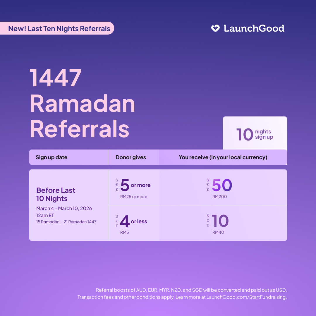 For the first time ever, LaunchGood is extending Ramadan Referrals until March 10th, 2026
