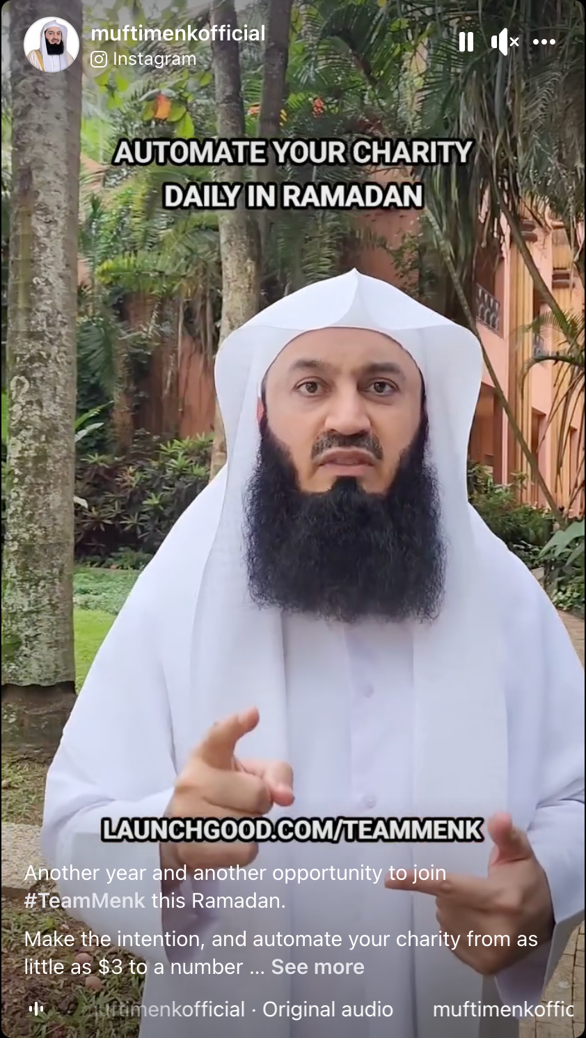 Mufti Menk, working with the organization Pilgrim, took a similar approach. While he does bring the star power, his technique of clearly explaining what to do and what the benefit is in a short 30-second video feels effective.